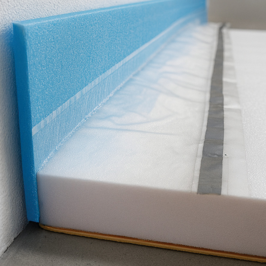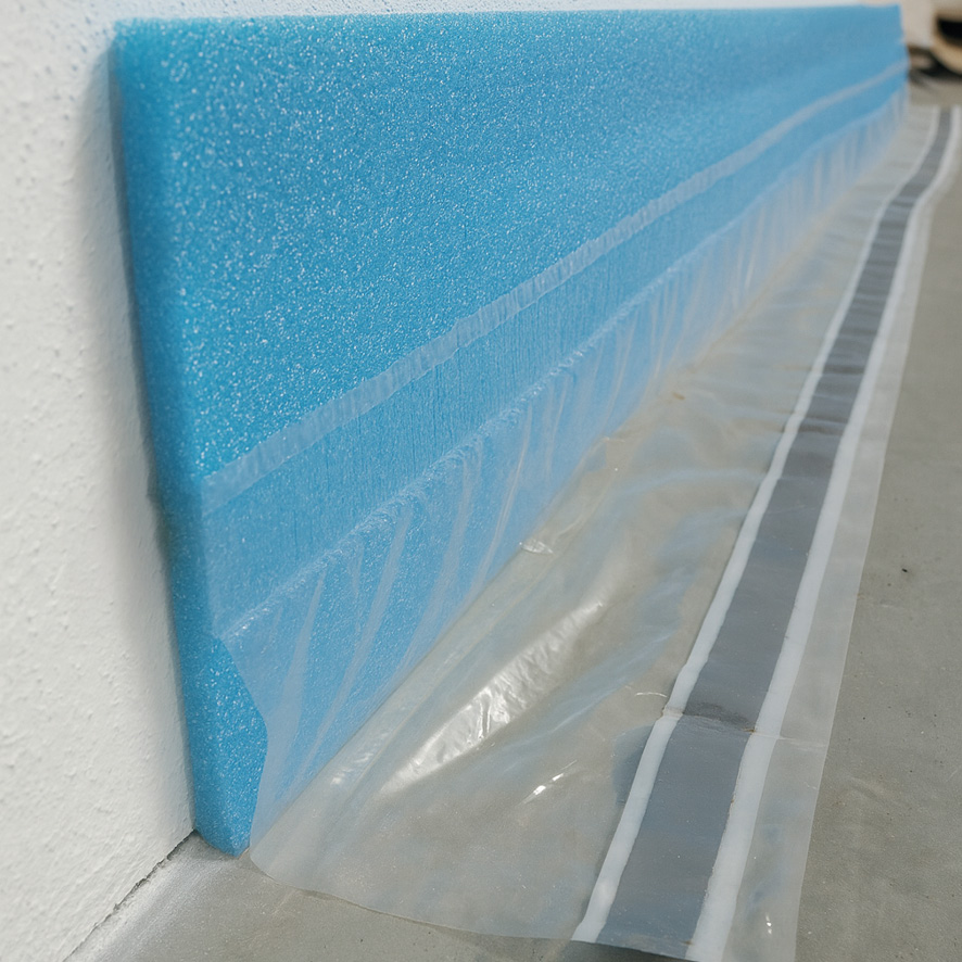 Pás účinně pohlcuje roztažnost materiálů, snižuje přenos hluku a zabraňuje vzniku tepelných mostů i vniknutí betonu mezi stěnu a podlahu.
