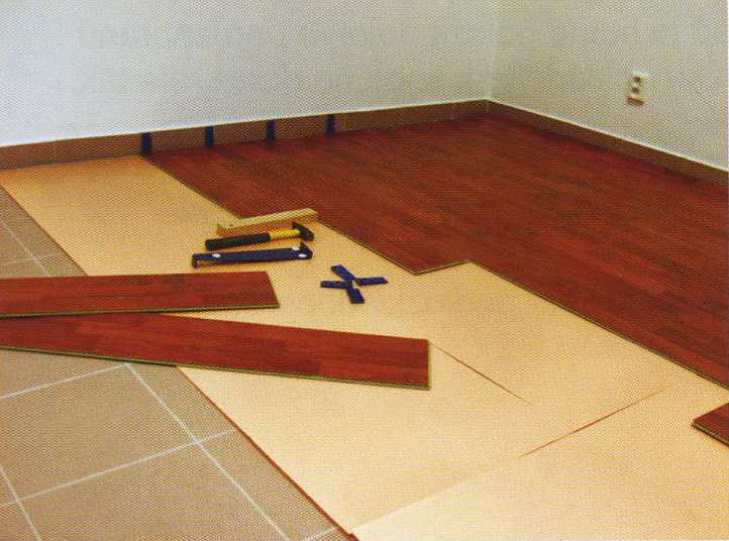 6. Pokládku podložky a podlahových lamel provádějte souběžně, aby nedocházelo k chození po nezakryté podložce.